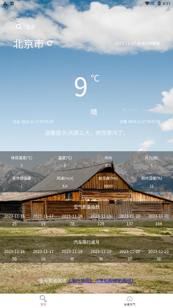 3、使用软件完全可以满足用户的出行需求,各种穿衣指南也有提供,满足了大家的需求。
