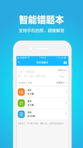 1.此外,App还提供智能错题本功能。您可以使用手机拍摄照片并一键上传。系统会自动提醒您复习计划并支持下载和打印