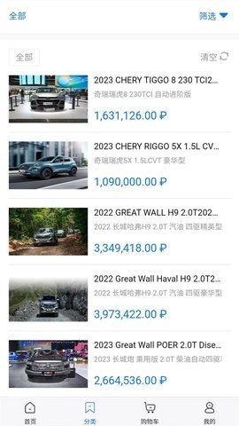 1.包含众多品牌、不同型号的汽车,您可以随时了解