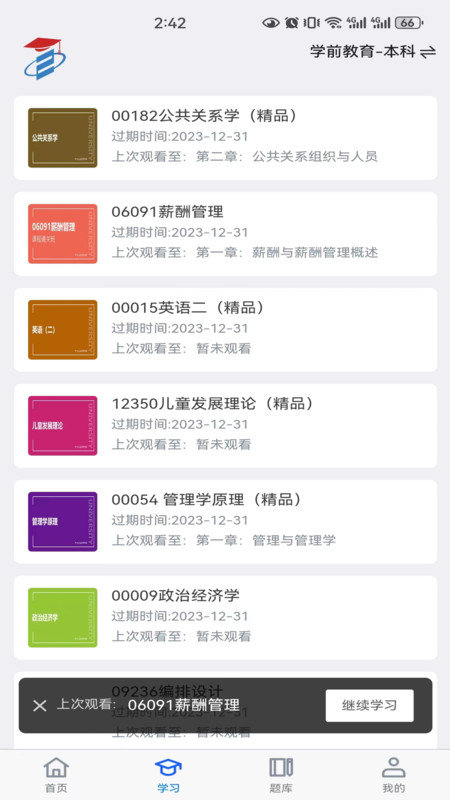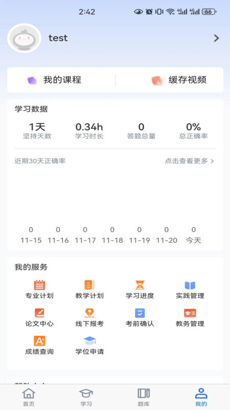 3、支持查看自己的课程学习进度,还可以随时刷题。