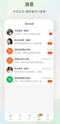 3.在学习过程中,用户可以随时互动,与其他学生和讲师建立联系,分享实践经验