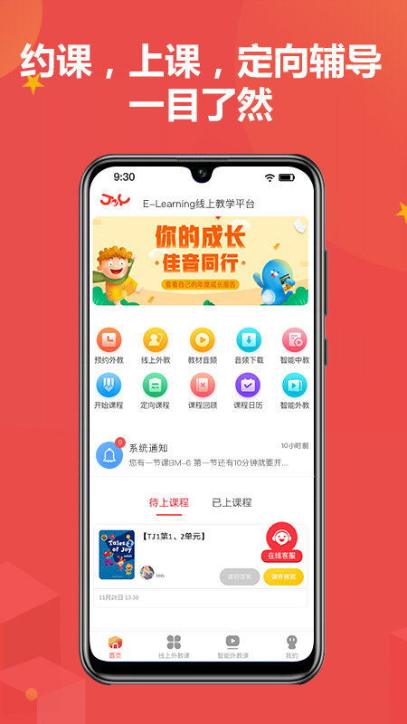 2、完全匹配佳音英语线下教材的教学内容,在线上进行呈现、复习、练习和测试
