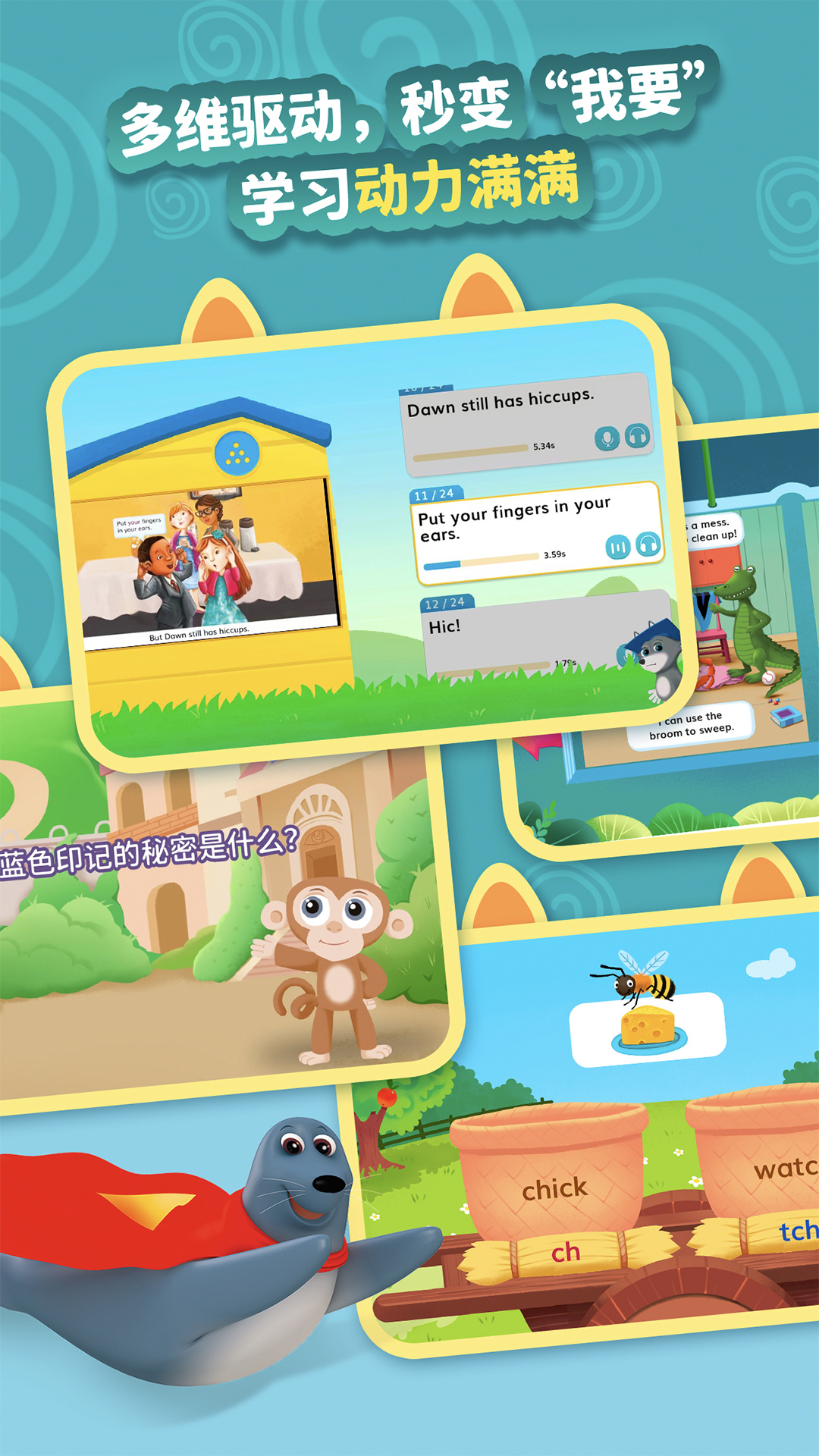 2、整个了音频、视频教学方式,满足更多孩子喜好。
