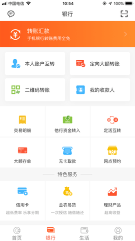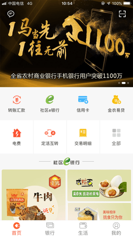 在提供转账汇款、账户管理、金农易贷、交易查询等主要功能的同时,还向您提供生活缴费、社区e银行等生活服务。