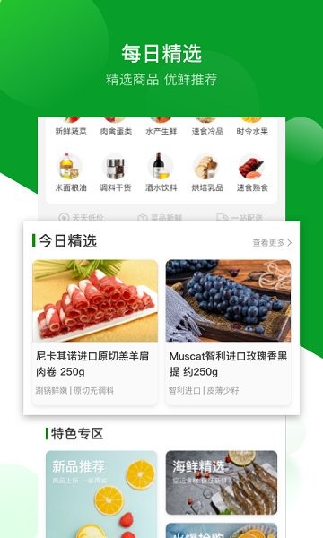 2.每天有不同菜品的特价蔬菜和折扣专区,进入专区你就能够节省更多的购买成本;