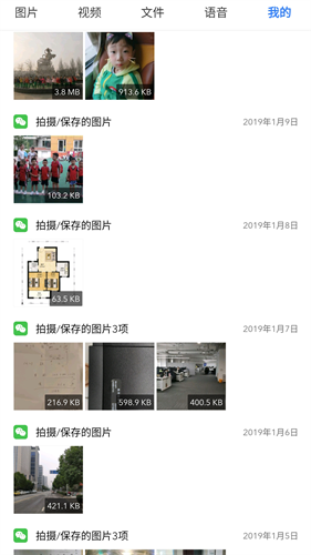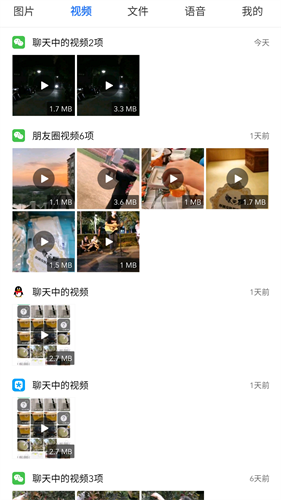 可以扫描出图片、视频、文件、语音等缓存,提供删除、导出、分享等功能;