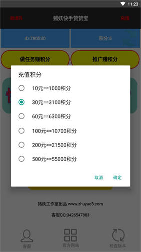 2、点击充值,在这里可以充值积分;