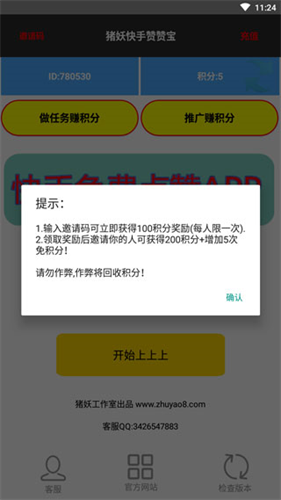 4、另外,邀请新用户填写邀请码也能获取积分哦。