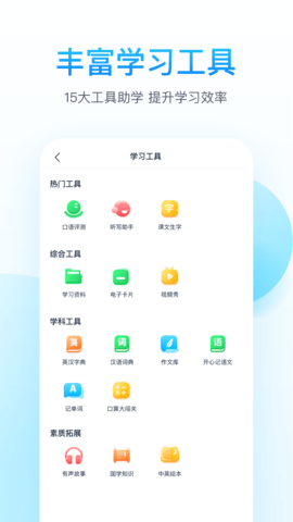 4、配备丰富的学习工具,帮助学生15个工具,提高学习效率。