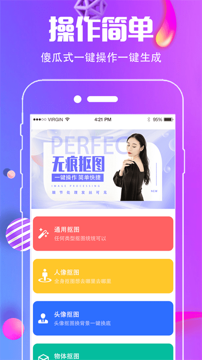 1·支持一键自动抠图功能,仅需一部手机即可轻松实现p图