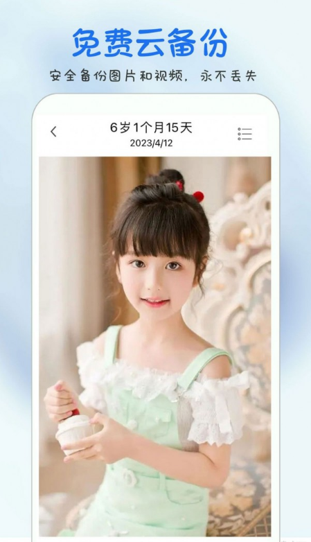 2、方便地将宝宝的照片和视频上传到云端,随时随地使用手机查看,不再担心照片丢失或备份问题。