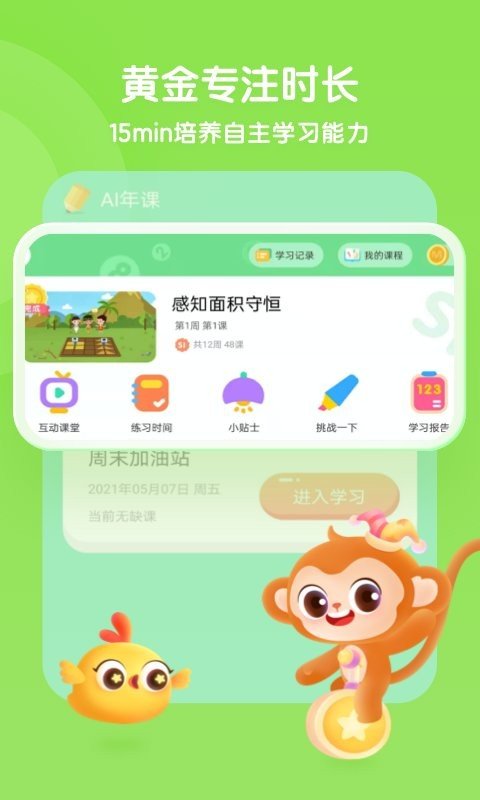 3、科学教学体系,思维启蒙科学的进阶式内容;黄金专注时长,15min培养自主学习能力。