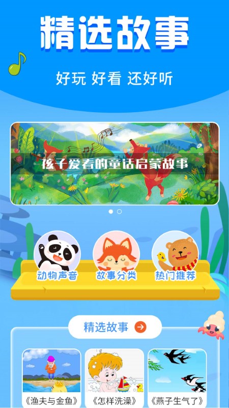 精选推荐有趣小故事,可以通过看动画片或选择音频模式来进行播放。