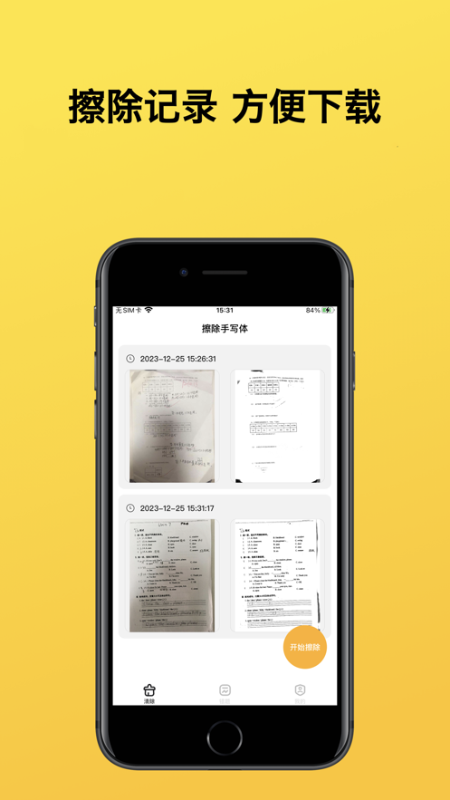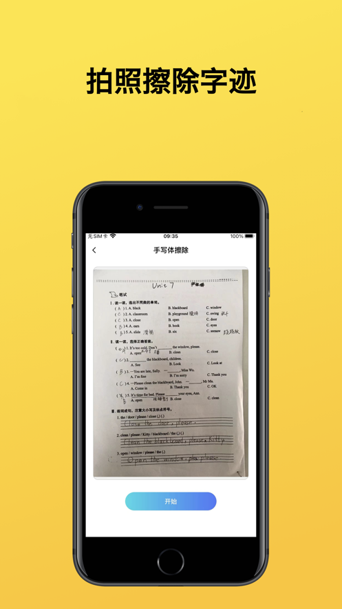 3、拍试卷:自动清除笔迹,完美还原空白试卷
