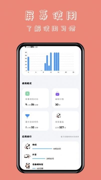 时刻了解自己的屏幕的使用时间程度并可以提醒需要休息的时间管理。