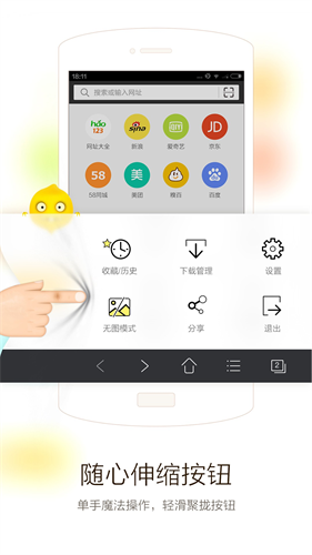 【伸缩菜单】随心伸缩浏览器按钮,专为大屏手机设计;