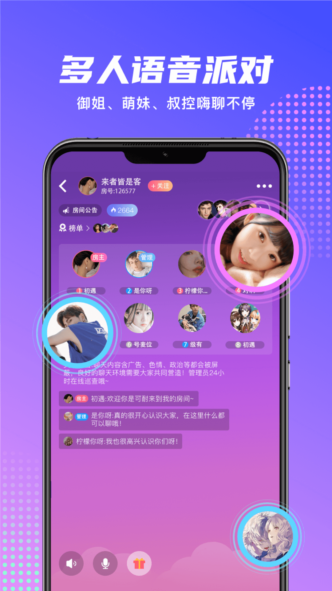 3.多人语音派对:御姐、萌妹、叔控嗨聊不停。