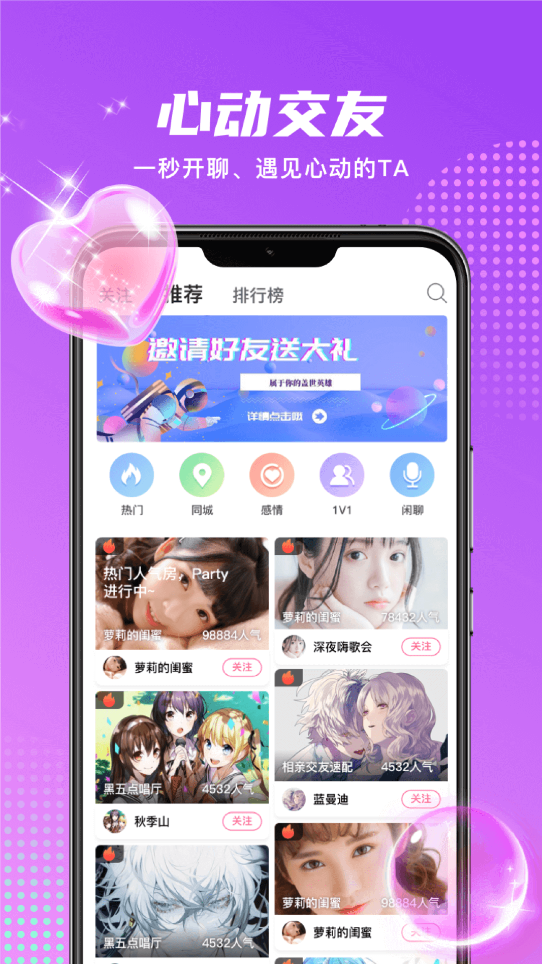 4.心动交友:一秒开聊、遇见心动的TA。