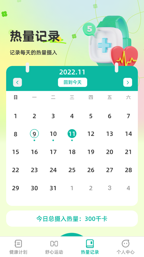 实时记录和打卡功能,让用户能更好的控制每天的饮食和运动时间提醒。
