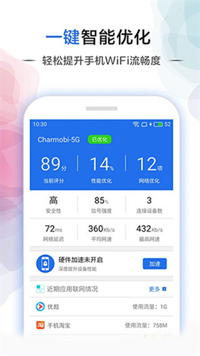 2.提供WiFi省电功能、查看手机流量消耗情况、快速将手机转换成wifi热点 。