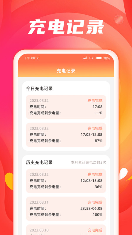 1、充电记录详细记录每次充电的时间和电量,方便用户查看和管理,功能十分的齐全。