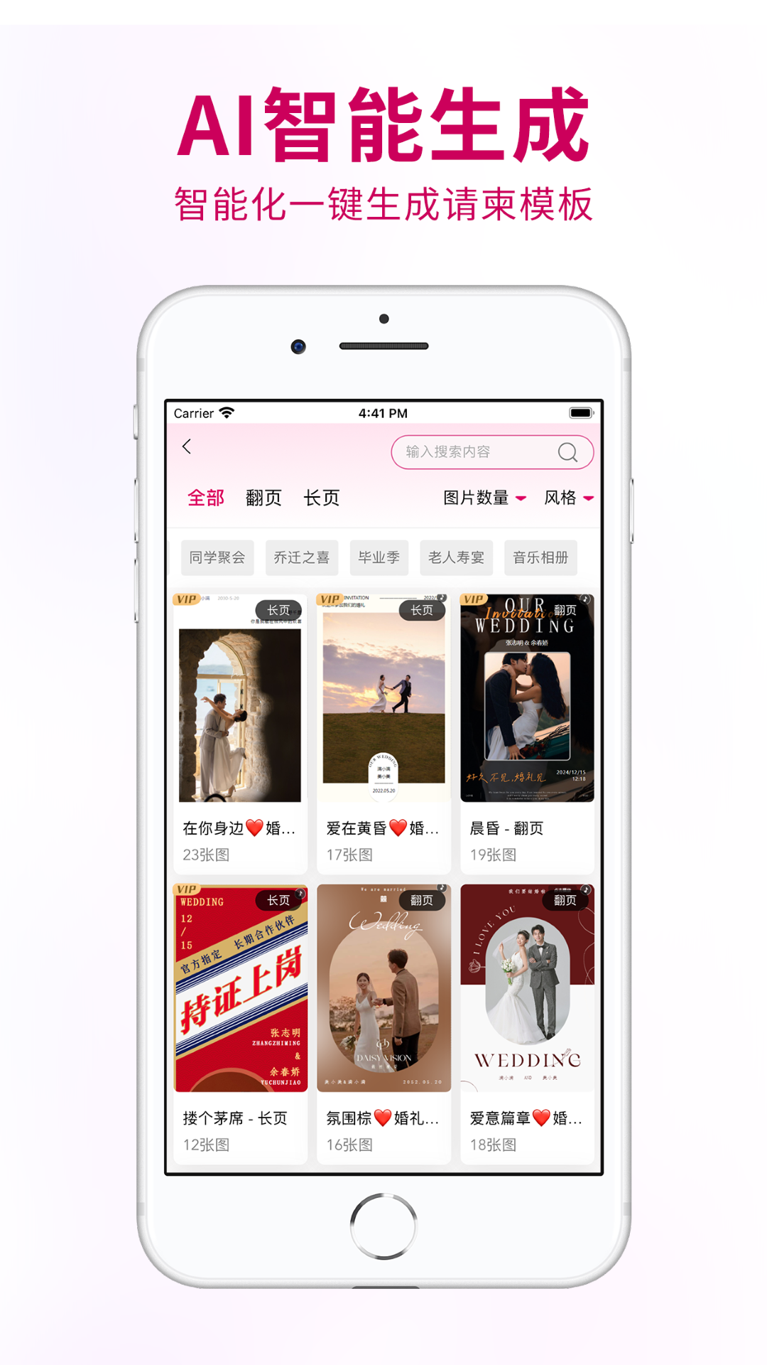 3、在这里提供的模板超多,可以轻松的打造不同风格的请柬。