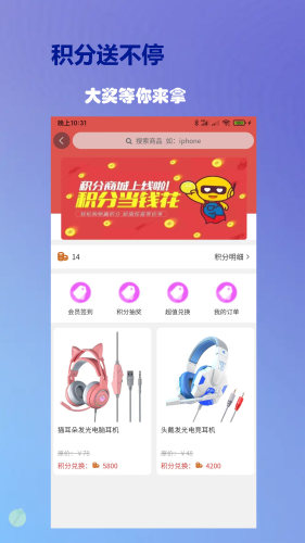 3、积分商城:您可以通过网上购买商品赚取积分,并用积分兑换好商品。