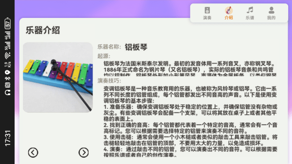 3、演奏:通过击打不同的铝管,可以演奏出不同的音符。您可以根据需要根据乐谱或自己的创作进行演奏。