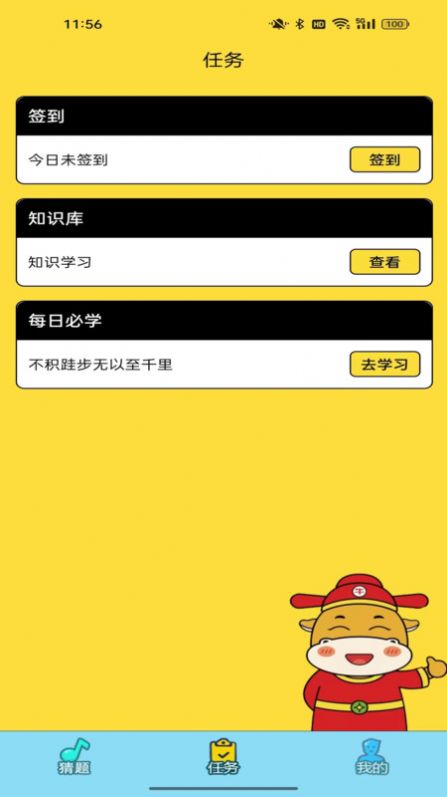 趣行猜谜是一款猜谜语趣味知识答题挑战闯关软件,该款软件能帮助用户学习更多与历史朝代相关的知识,精心布置了每天必学需要完成的任务,可完成每日打卡签到,拥有丰厚的知识库资源,选择每日必学选项来开始练习猜谜答题,玩法也很简单,很考研用户对题目的阅读理解能力。