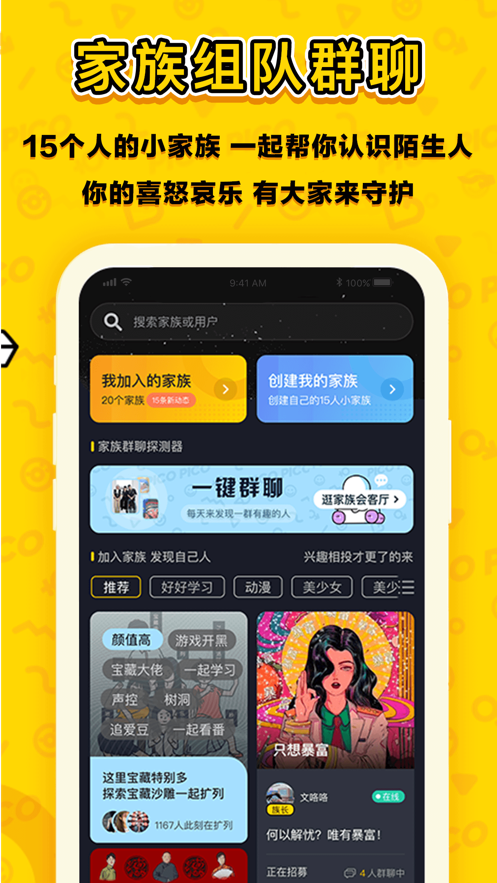 3、还能在这里建立社群,开启家族群聊模式,这样我们就能分成一个圈子来玩。