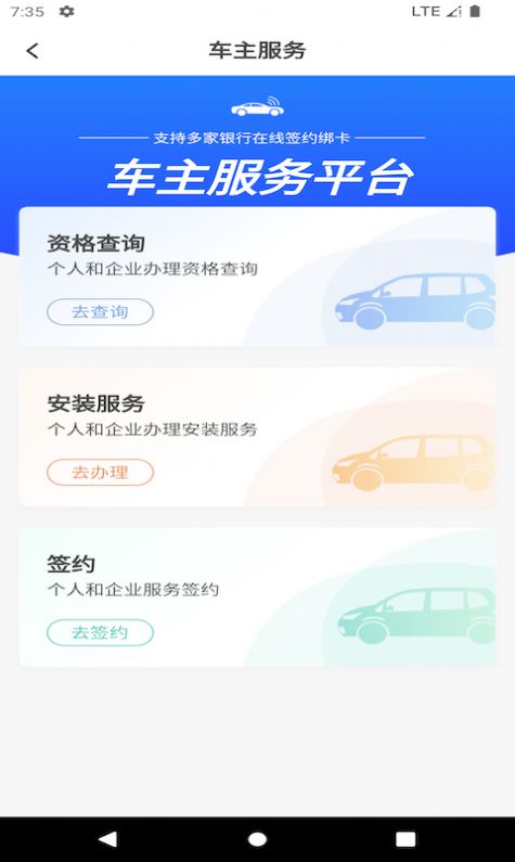 可随时查看我的车辆设备,提供在线啊和功能完成签约和个人企业安装服务。