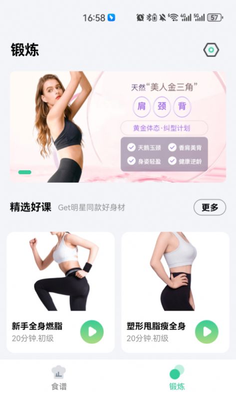 瘦身食谱和健身锻炼课程,两者结合帮助用户能真正做到有效的减肥瘦身体。