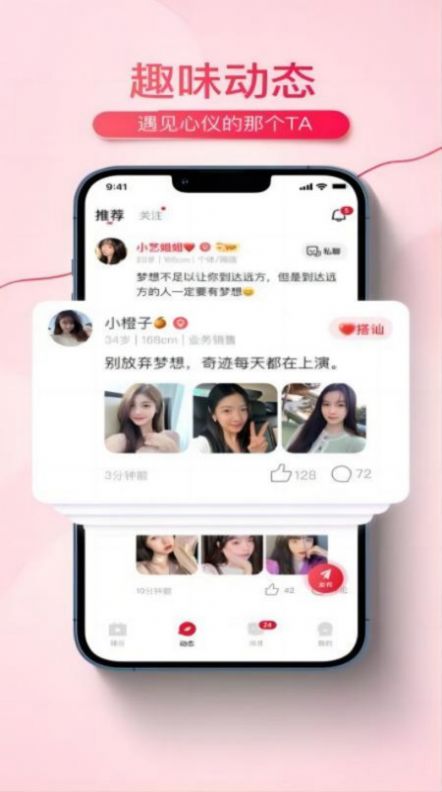 2、趣味动态的互动平台,遇见心仪的那个TA,便捷互动;