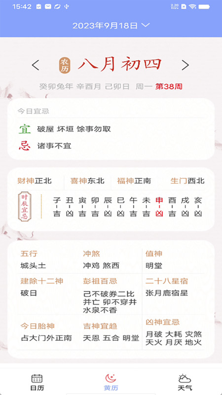 2、还有风水的宜忌都是很到位的,黄历信息以及天气预报信息都值得信赖。
