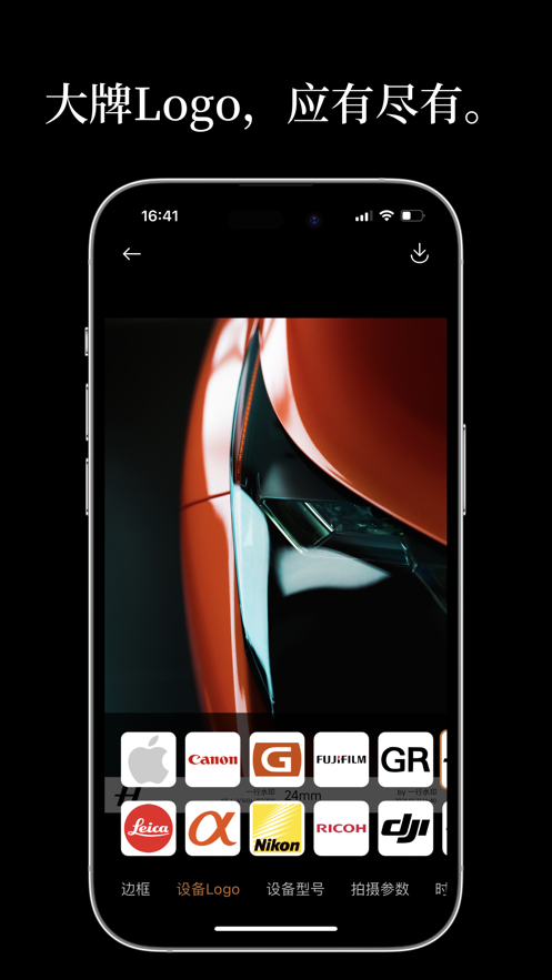 2、在这里有不同品牌的相机的logo任你使用,随时一键添加。
