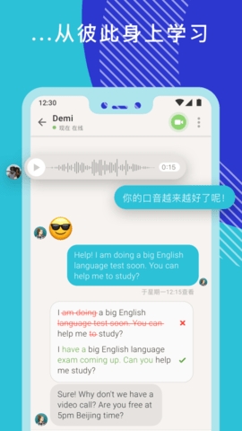 融入外国文化,并利用语音信息、语音和视频通话改善你的口说技巧。