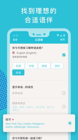 2、根据您的兴趣和语言能力,找到理想的语言交换伙伴。