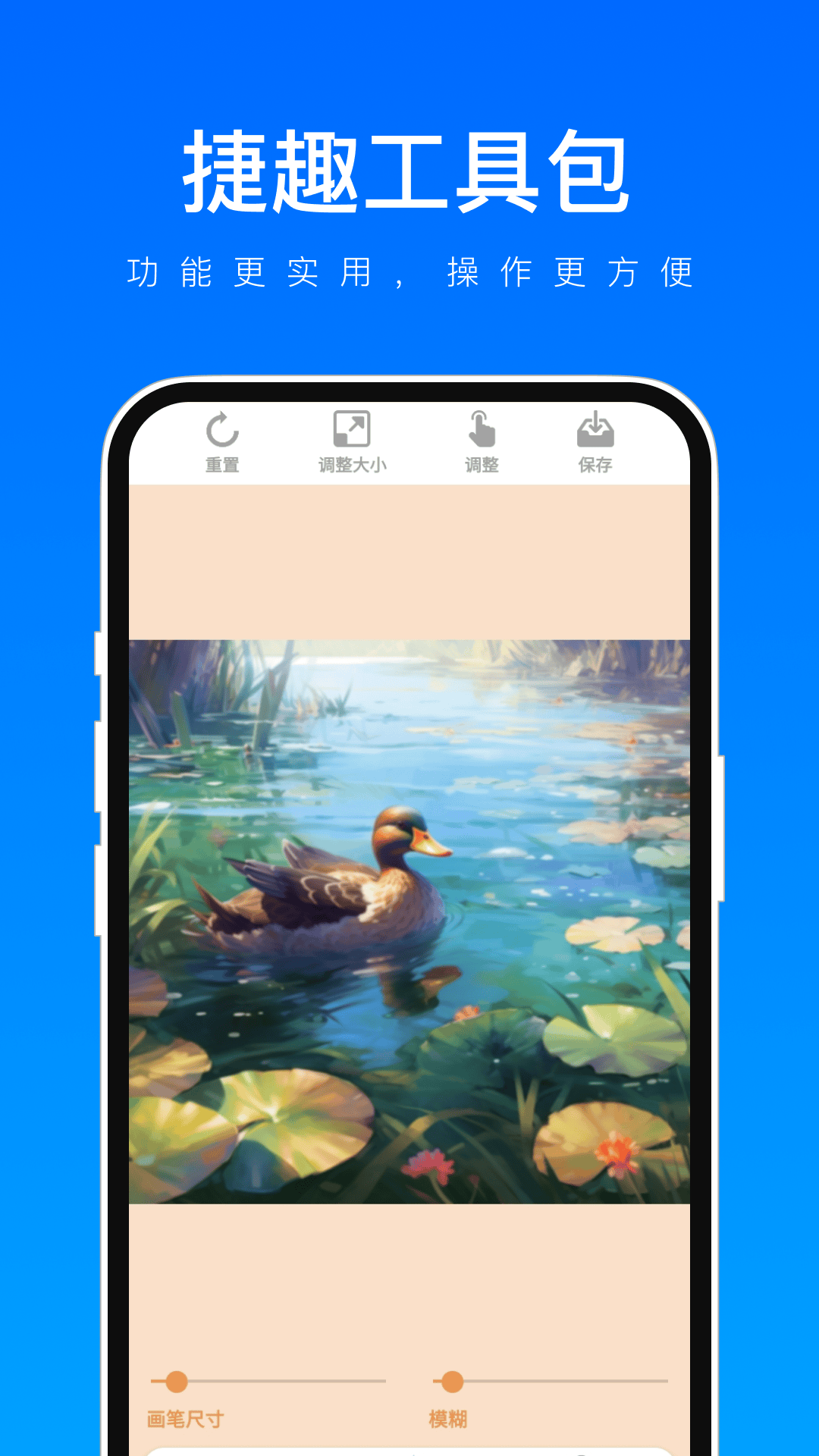 捷趣工具包是一款最为有效果的工具箱助手,app中具有丰富的图像编辑能力,用户可以对照片进行裁剪,滤镜处理,贴纸添加等,很容易就能创造出属于自己的照片,这款软件整合了超多的功能制成了一个线上制作工具,让用户能够完成海报设计,名片制作,图文排版等多种功能,满足了用户多样化的创作需要,办公还是玩机都可以轻松完成。