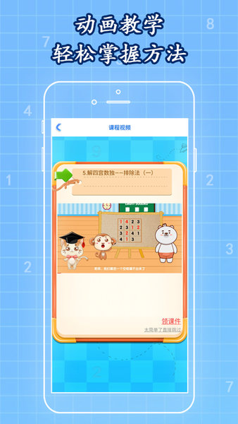 4、孩子们可以通过软件随时观看课程学习,跟随老师的讲解逐步掌握数独的奥秘。