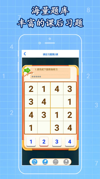 3、软件提供了详细的课程学习内容,帮助孩子系统地学习数独的基本规则和解题技巧。