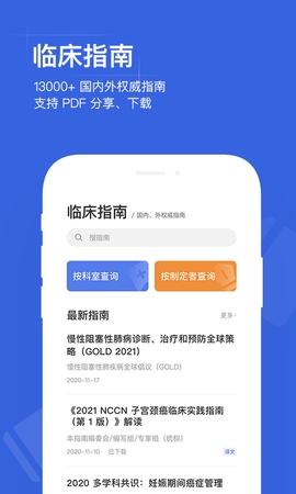 3.临床指南:13000+国内、外专业机构发布的指南、共识,支持PDF分享或下载。