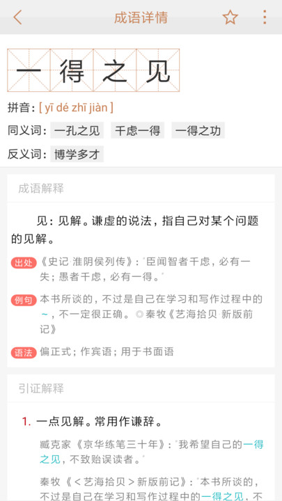 包含几乎所有的成语和单词,并为您提供了大量信息,为您提供了多种分类。