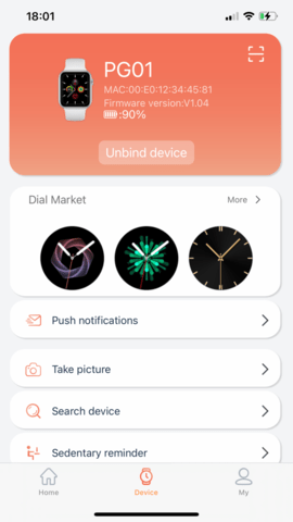 3、自定义智能手环的界面,用户们可以在平台上给自己的智能手环添加相关的内容资讯,而且还可以根据自己的需求,主动调整众多手环服务。