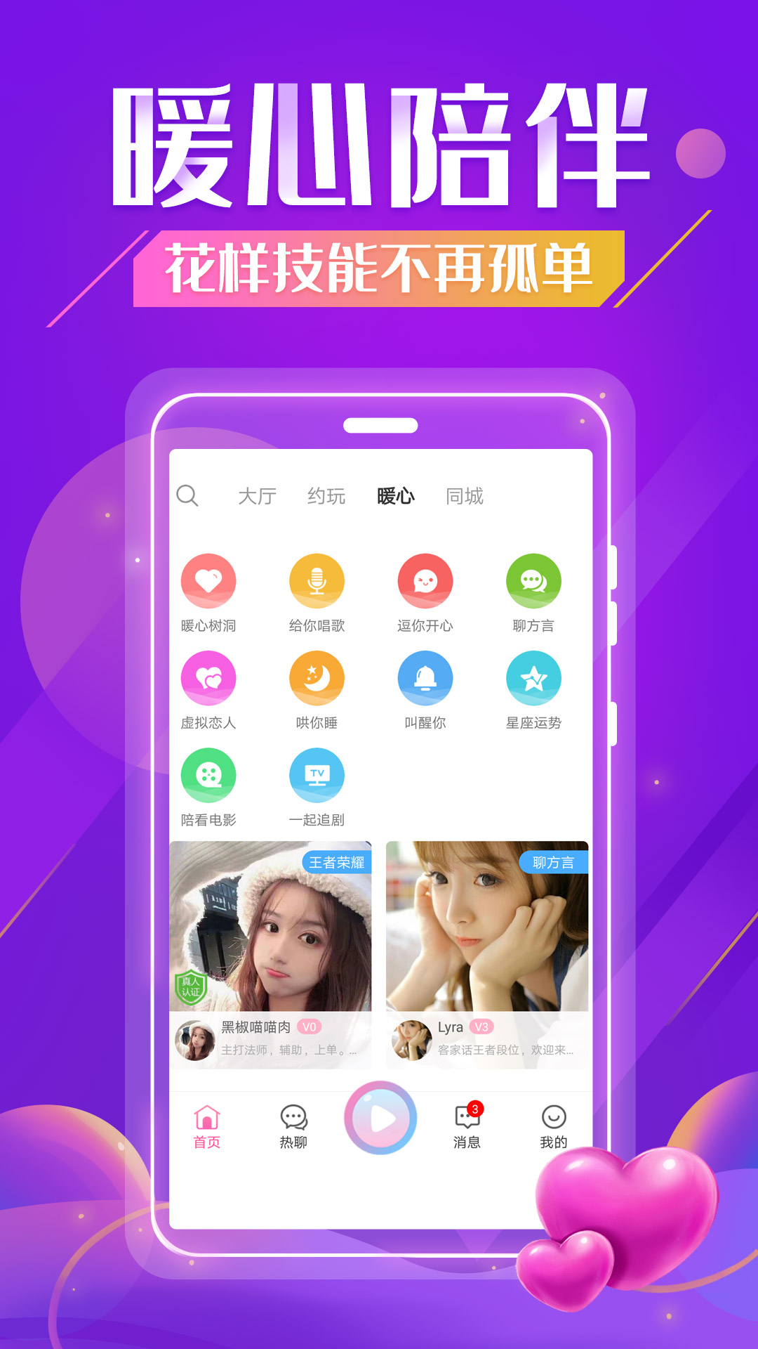 语音互动聊天平台,可以选择各种类型的陪伴玩,结交朋友也很好。