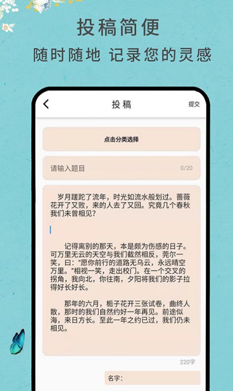 2、投稿简便,随时随地,记录您的灵感;一键收藏,好文共享,收藏没好。