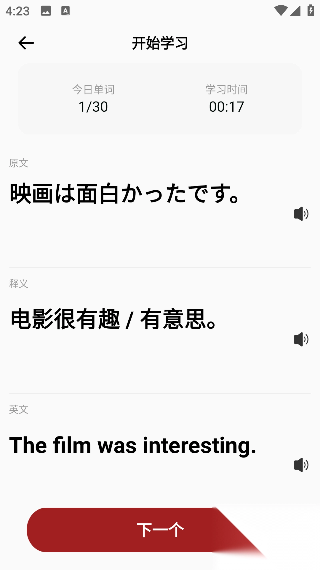 3、由专业日语外教亲自录制单词发音,帮助用户纠正发音,有效提升口语能力。