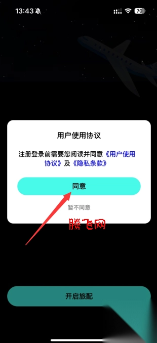 1、从腾飞网下载软件后,点击“同意”按钮接受用户协议。