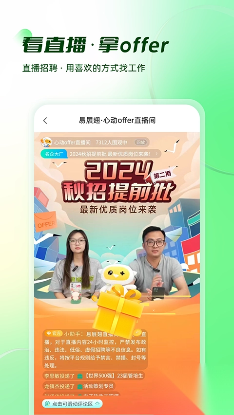 易展翅app,由尊一集团携手共青团广东省委共同打造,是一款专注于职业成长的服务软件。它切实为大学生就业难这一痛点提供了有效解决方案。该软件运用线上招聘模式,与全国众多知名企业建立合作关系,平台上有着形形色色极具潜力的实习岗位。各大公司会把自家职工工作流程的视频发布到软件中,方便用户轻松了解。不仅如此,所有薪资待遇均遵循国家统一标准,较同类公司更为优厚。用户面试只需通过线上与面试官进行视频面试即可,拥有大量挑选公司的机会。截至目前,已有超1000万中国内地青年借助这款软件成功就业。同时,软件经过严格实名认证,充分保障用户隐私安全。感兴趣的小伙伴,快来下载体验吧!