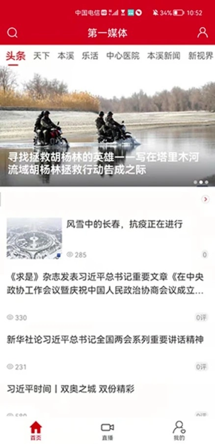 第一媒体,作为本溪县广播电视台主办的本地新闻资讯平台,整合了广播电视栏目、政务发布、民生资讯、专题报道等多种类型的内容,为本溪市民量身打造手机新闻客户端。不管是政策通告、突发事件,亦或是交通公告、天气预警,用户都能第一时间获取最权威的信息。