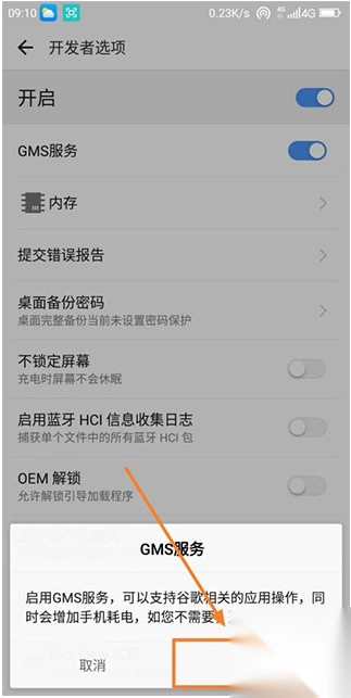 依次点击“系统”-“开发者选项”-“GMS服务”;